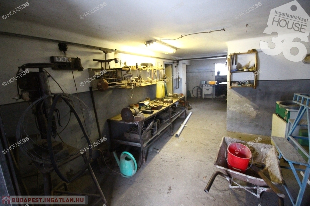 Az alsó szinten (több mint 100 m2) pince, műhely, tárolók.