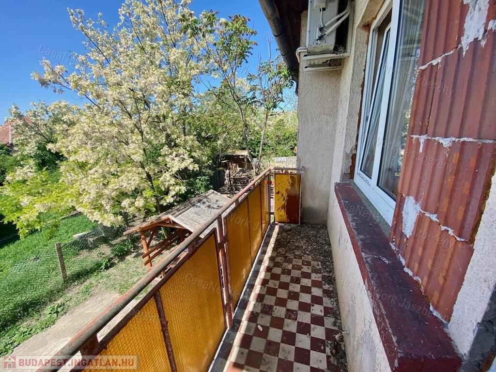 A csendes utcában elhelyezkedő ház pár percre található a falu központjától. A két szintesre tervezett épület 150 nm-es telekre épült, a lakótér 120 nm alapterületű. A ház folytatásában egy melléképület található. A tégla építésű ház tetőfedése cserép. A nyílászárók fából és műanyagból vannak. A házban villany és víz van. Fűtését-hűtését jelenleg split klíma szolgáltatja. A lakótér belső térelosztása a fölszinten; konya+ étkező, 1 szoba, a tetőtérben; nappali, 3 szoba, erkély, fürdőszoba, WC.