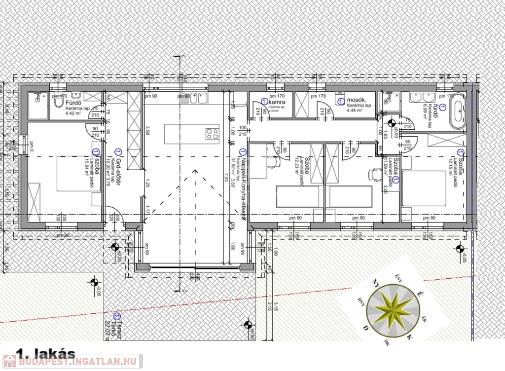 - Terasz: 22 m2, 600m2-es SAJÁT KERT