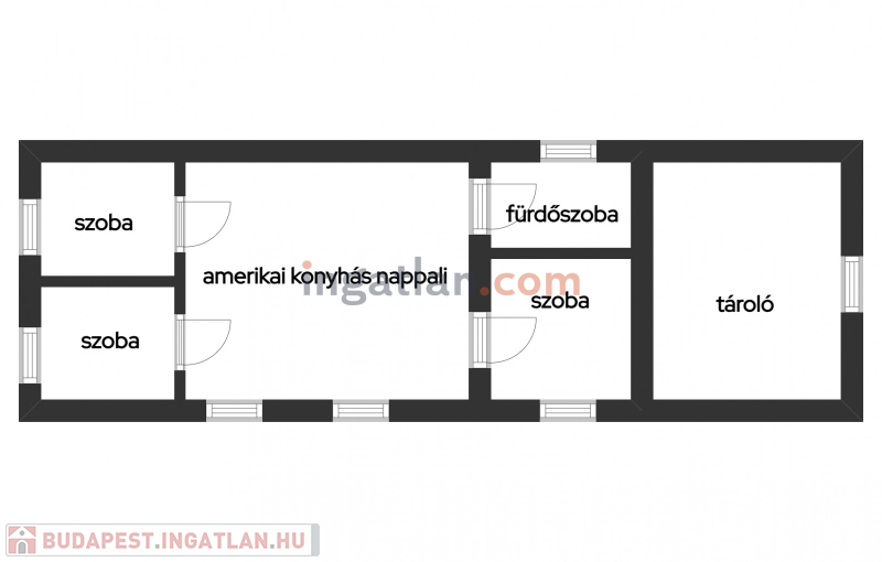 Kialakítás: 3 hálószoba, amerikai konyhás nappali, tágas zuhanyzós fürdőszoba
