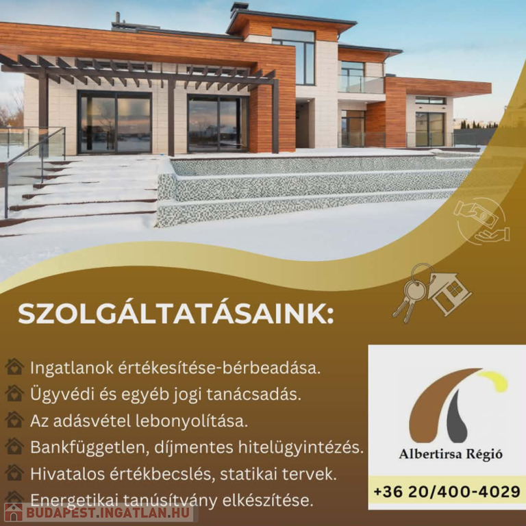 Albertirsa menetrend szerű vonatközlekedéssel rendelkezik, mely Budapest Nyugati pályaudvartól 48 perces menetidővel közelíthető meg, Budapesttől 50 km távolságra Ferihegy repülőtértõl az új M4 autópályán 35 km távolságra helyezkedik el.Kérem hívjon bizalommal, hétvégén is állok ügyfeleink rendelkezésére!