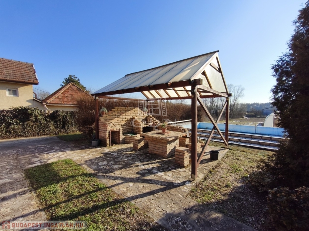 A csendes környezetben található ingatlanból gyönyörű kilátás nyílik a kertre, ahol megpihenhet, lazíthat a medencében, de akár a kerti sütögetőt használva vendégeket is fogadhat.