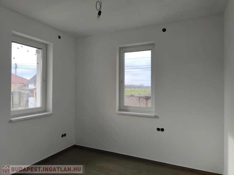 723 m²-es telken épülő, 74,4 m²-es modern családi ház, 15,5 m²-es terasszal. Minőségi alapok: vasbeton sávalap, Porotherm falazat, fafödém cellulóz szigeteléssel, Terrán tető, hőszigetelt homlokzat. Nyílászárók: fehér műanyag külső, fa belső.Helyiségek: amerikai konyhás nappali teraszkapcsolattal, 2 háló, fürdő, külön WC, közlekedő. Az ár tartalmazza:- Burkolatok: laminált padló 5.000 Ft/m², járólap/csempe 7.000 Ft/m²- Fehér festés- 2,8 kW napelem- Padlófűtés + kondenzációs kazán- 3,5 kW klíma Törölközőszárítós radiátor- 1×32 A elektromos hálózat- Redőny előkészítés- 2 WC, szaniterek 250.000 Ft-ig, épített zuhany- Viacolor járda kaputól a házig és teraszig. Egyedi igények teljesítése, megtekinthető referenciákkal. A képek az előző munka folyamatáról készültek! Az építkezés foglalózás után kezdődik, kivitelezés 6-8 hónap. Nyugati – 48 perc Budapest: 50 km, Ferihegy repülőtér: 35 km (M4 autópályán) Ne maradjon le erről a lehetőségről! Hívjon bátran hétvégén is: Alitisz Judit 0620 4004009 Nézze meg a képeket – és ha el tudja képzelni itt új otthonát, hívjon bizalommal!