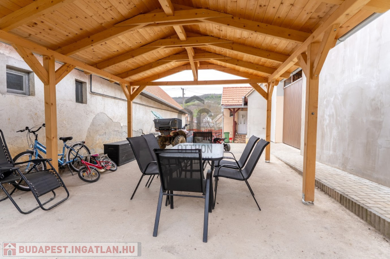 - Az udvaron nagy méretű fedett beálló, vagy kiülő került kialakításra.