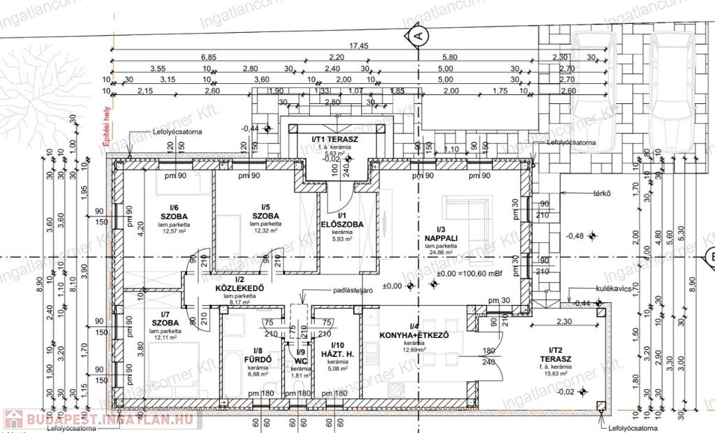 102m2 lakótér, melyhez 21 m2 terasz tartozik.