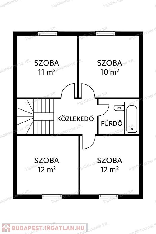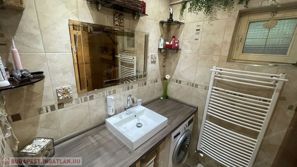 2 fürdőszoba: földszinten zuhanyzós, emeleten kádas.