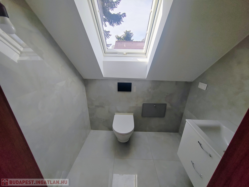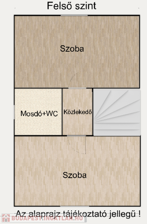 A felső szinten található 2 hálószoba és egy tágas mosdó-wc.