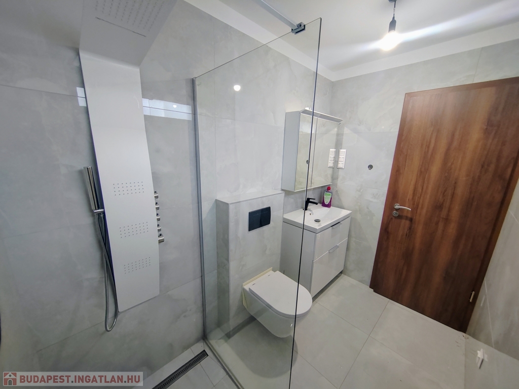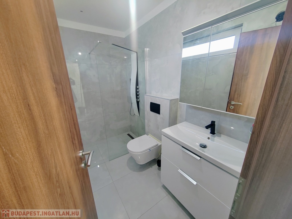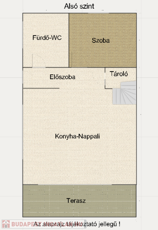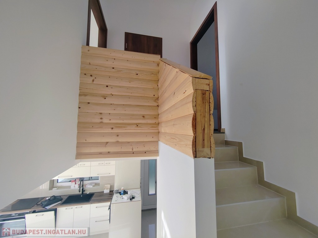 Az alsó szinten amerikai konyhás-nappali, 1 hálószoba és fürdő+wc egyben kialakítással.