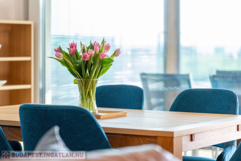 A 95 nm-es nettó hasznos alapterületen 4+1 szobás, 3 fürdőszobás lakás lett kialakítva, a földszinten tágas nappali-konyha-étkező, kamra, valamint előszoba, fürdő és egy hálószoba található, valamint egy 21 m2-es télikert.