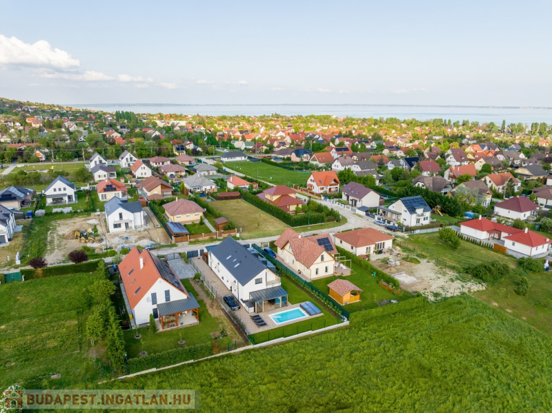 Alsóörs csendes, nívós részén, újszerű családi házak környezetében kínálunk eladásra ezt a minden igényt kielégítő, 2022-ben épült ikerház hátsó, nem utcafronti részét, 472 m2 telekrésszel.