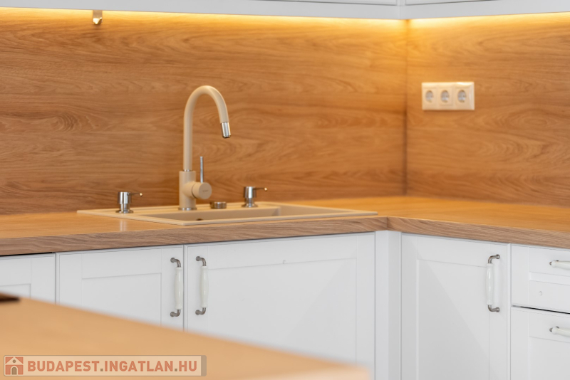 - burkolatok : tölgy szalagparketta, kerámia a vizes helyiségekben