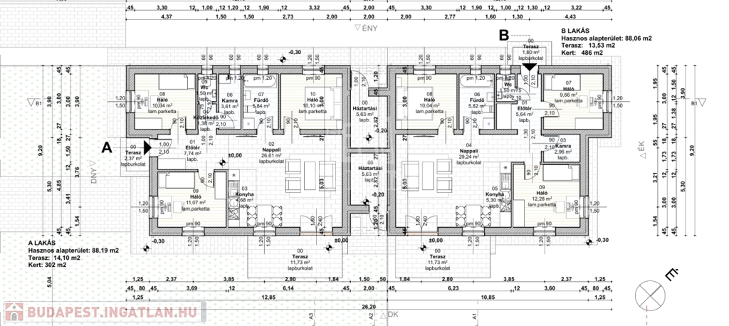 A két lakás kizárólag a tárolónál kapcsolódik, így a leendő tulajdonos számára kivételesen nyugodt, privát környezetet biztosít.