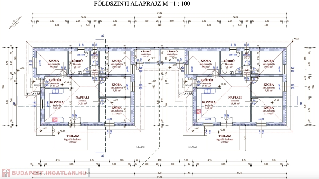 MÉRETEK, TÁJOLÁS, ELRENDEZÉS, AZ ALAPRAJZOKON.