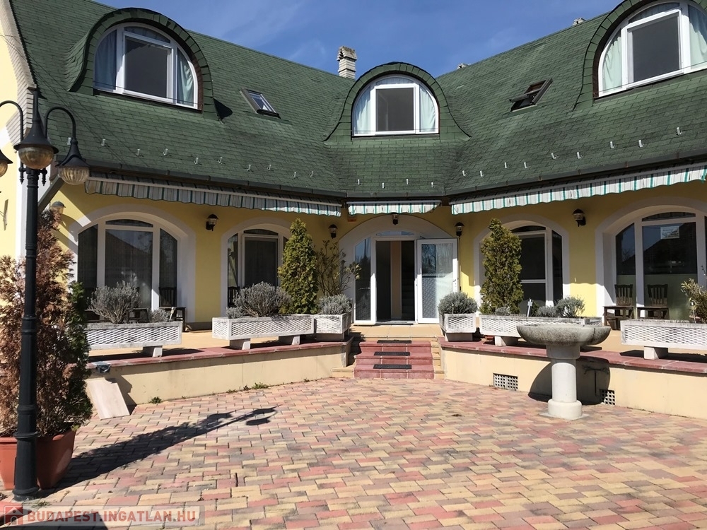 Ásványrárón, Győr és Mosonmagyaróvár közötti településen, 450 m2-es, összközműves telken lévő, jelentős felújításokon átesett, (fűtéskorszerűsítés, nyílászárócsere, vezetékek cseréje, burkolatcsere, festés, stb.), 3 szintes épületben, 10 db külön bejárattal rendelkező hálószobás, (28-30 fő befogadására alkalmas) - minden hálószobához tartozó saját fürdőszoba - WC-ből, tágas társalgóval, étkezőből, konyhából álló – 339 m2-es hasznos alapterületű KLIMATIZÁLT panzió/hotel/családi ház, 134 m2-es dél-nyugati TERASSZAL, ERKÉLLYEL , teljes gépesítéssel eladó.