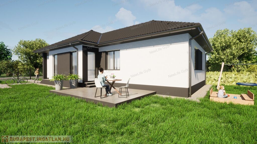 A 4 szobás, 94 m2-es családi ház 630 m2-es telekhányadon (összesen 1312 m2 telken) másodmagával épül és fűtéskész állapotban kerül átadásra várhatóan: 2026 első felében. Természetesen, kulcsrakész befejezésre is van lehetőség.