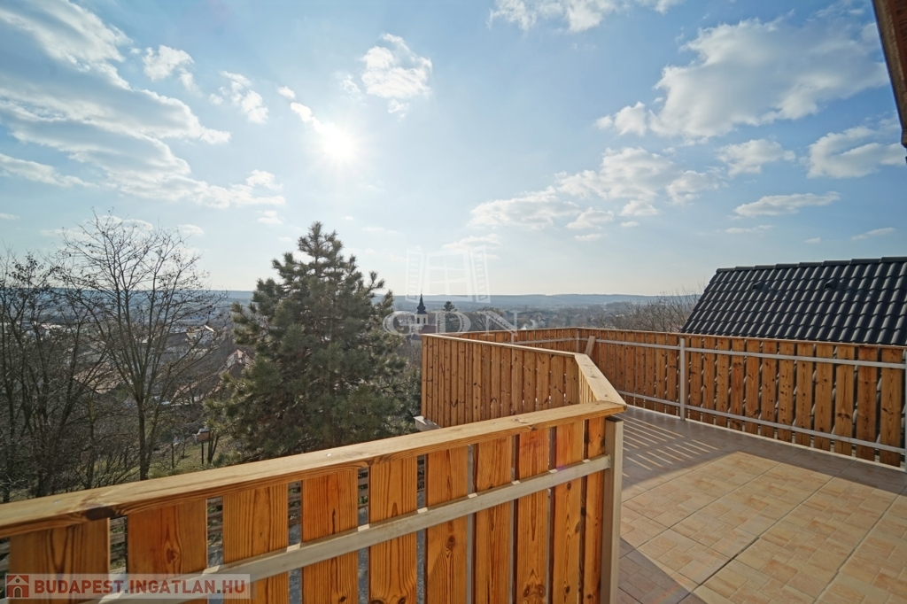 Az 54m2-es nappaliból gyönyörű panoráma látható a 15 m2-es terasz irányába. A 9,92 m2-es hálószoba is panorámás kilátással rendelkezik. További két szoba található ezen a szinten és egy igényes anyagokkal felújított fürdőszoba is.