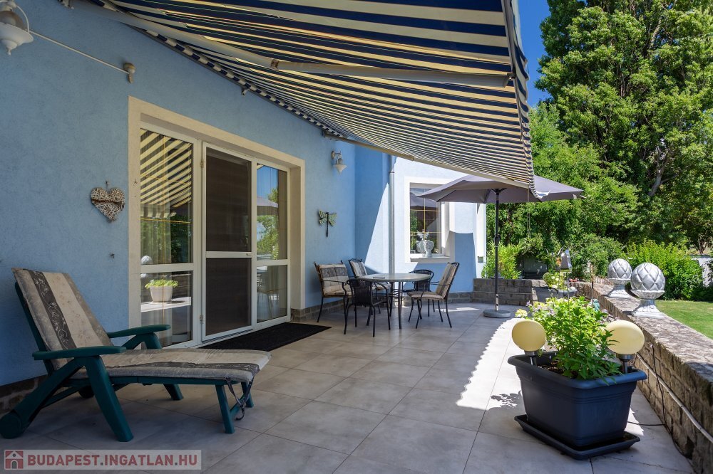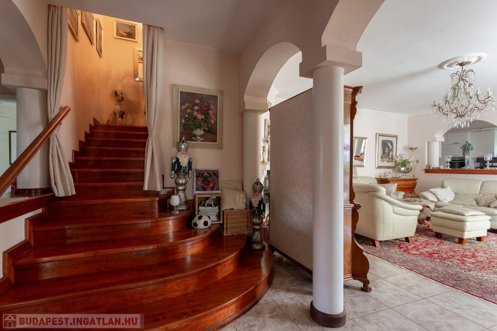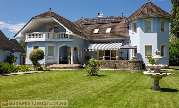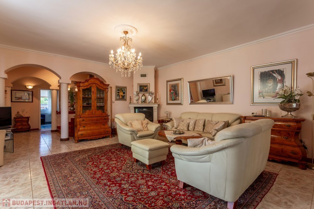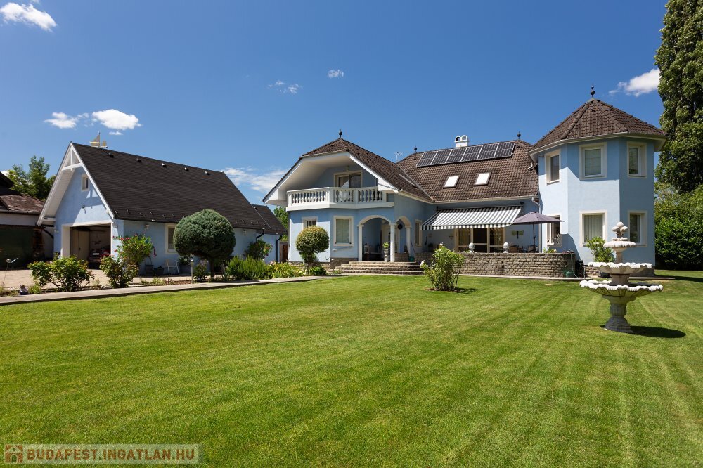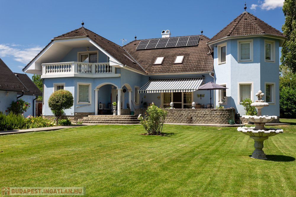 A 280 m²-es, kiváló állapotban lévő, napfényes lakóingatlan egy 1762 m²-es, parkosított telken helyezkedik el, medencével, borospincével és duplagarázzsal kiegészülve.