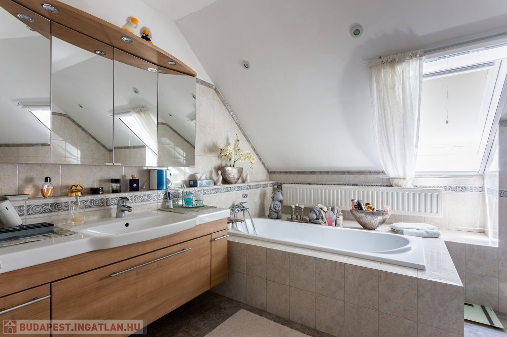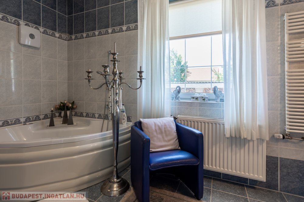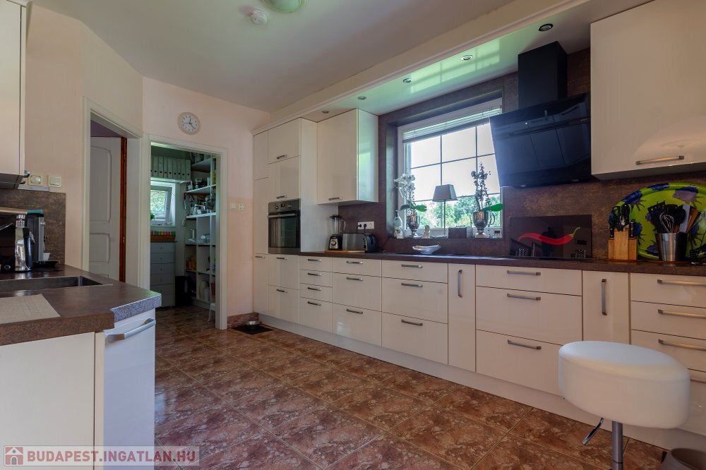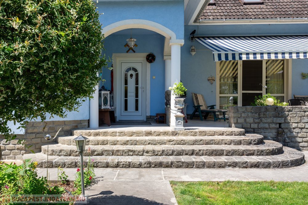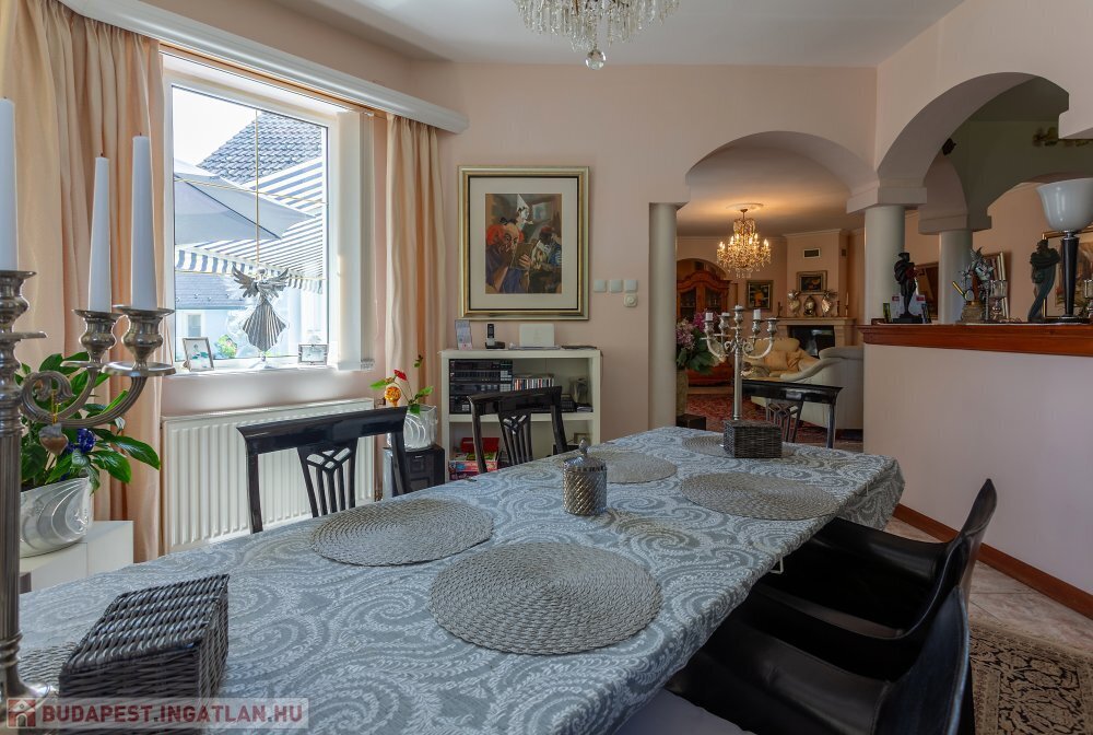 A 280 m²-es, kiváló állapotban lévő, napfényes lakóingatlan egy 1762 m²-es, parkosított telken helyezkedik el, medencével, borospincével és duplagarázzsal kiegészülve.