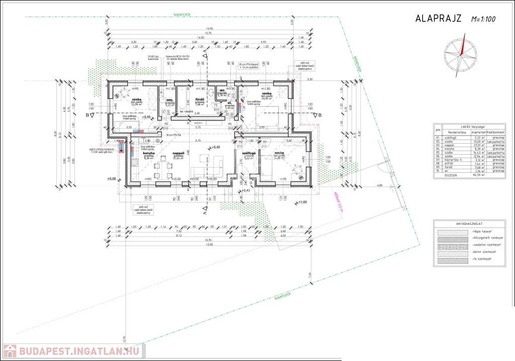 Az ingatlan Porotherm P30N+F téglából épül, fa födémmel. Külső nyílászárók korszerű 3 rétegű üveggel szerelt műanyag themo kivitelűek lesznek.