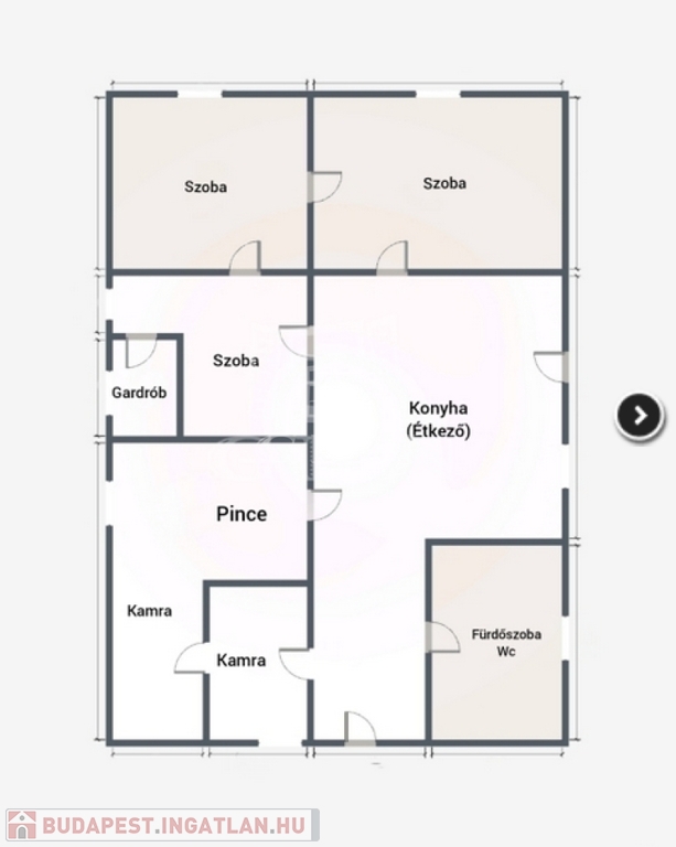 Az ingatlanban található 3 szoba, egy gardrób, továbbá egy fürdőszoba+ wc, egy konyha étkezővel, valamint egy pince és 2 kamra melyből az egyikben található a padlásfeljáró.
