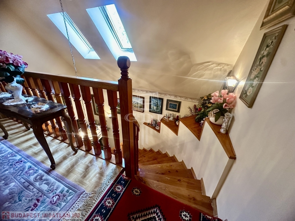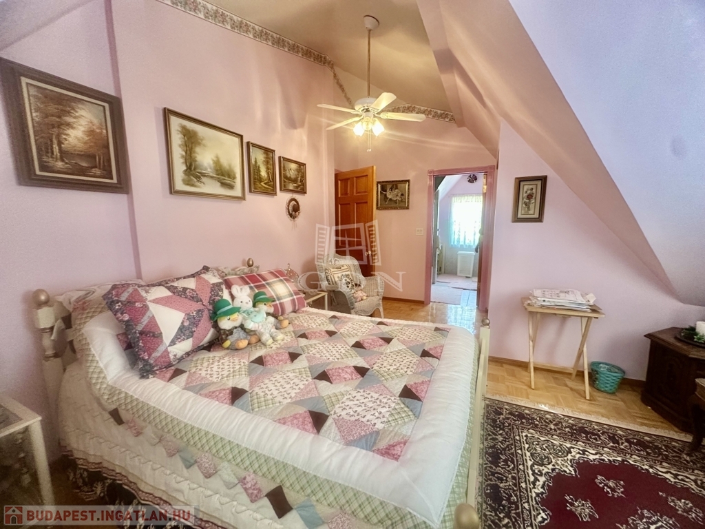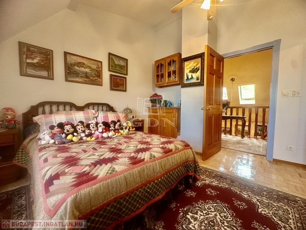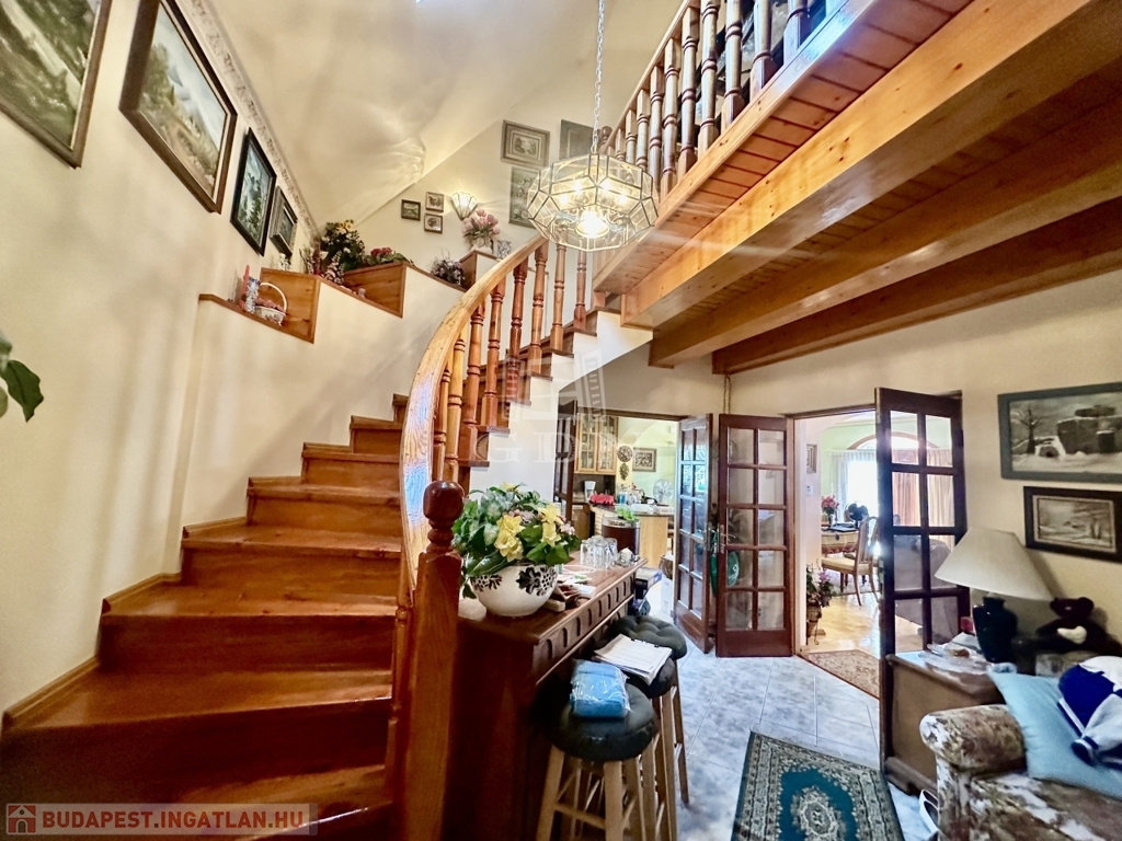 Az emeletre csodás vörös fenyőből megépített lépcső-soron mehetünk fel, itt 3 hálószoba és 2 fürdőszoba található, egyik közvetlen hálóból nyílik.