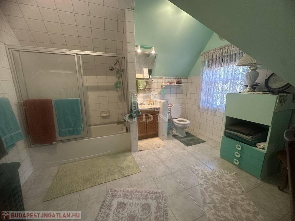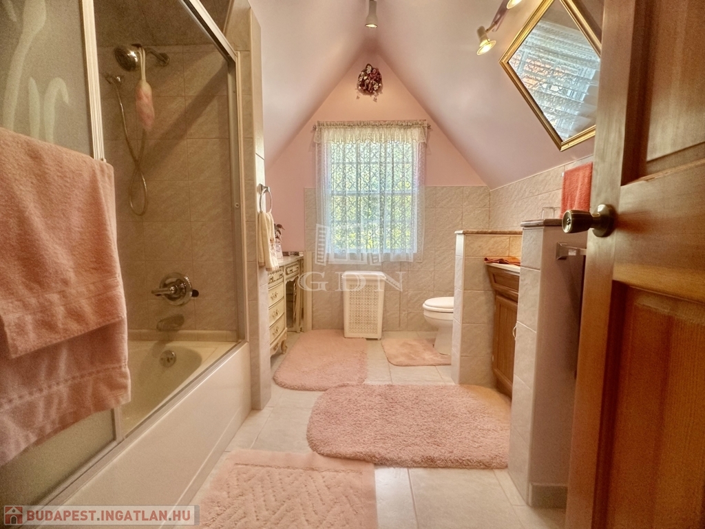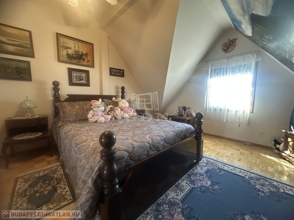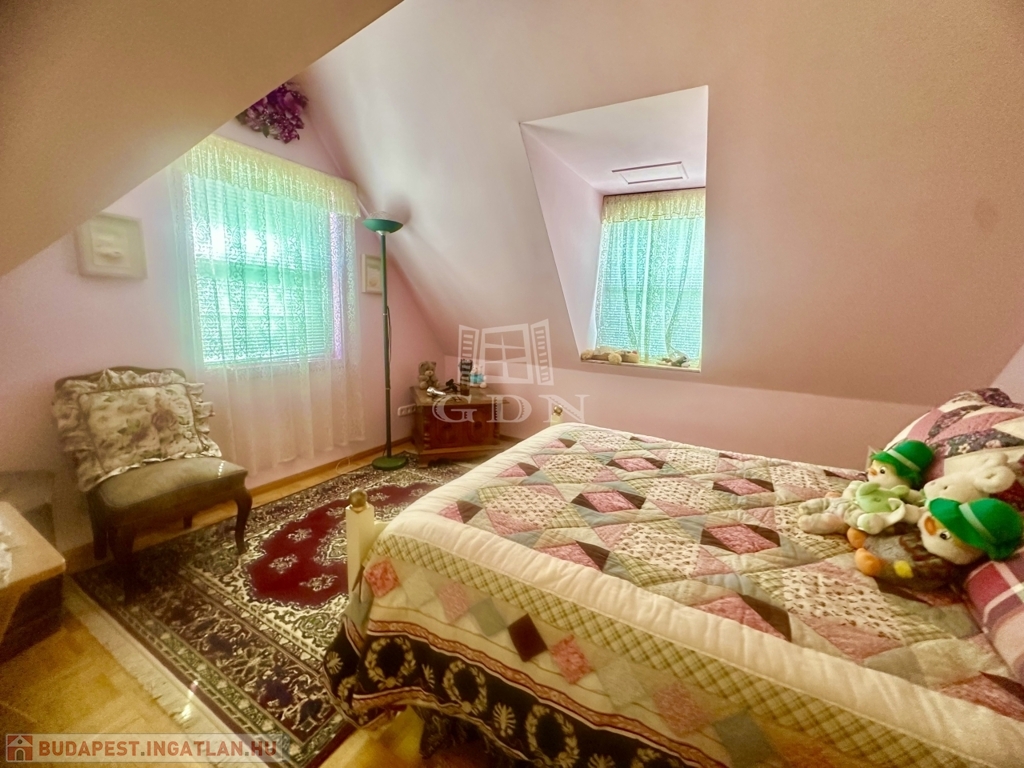 Az emeletre csodás vörös fenyőből megépített lépcső-soron mehetünk fel, itt 3 hálószoba és 2 fürdőszoba található, egyik közvetlen hálóból nyílik.