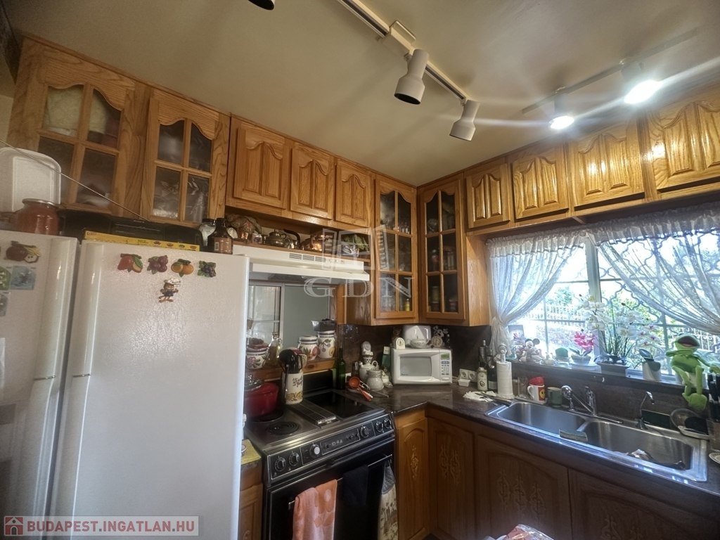 A ház mögötti udvaron 2 autó számára fedett beálló van, de emellett egy földbe megépített garázs és nyári konyha, fürdőszoba is hasznosítható. A kaputól egészen idáig vezető út szépen térkövezve lett. A felette lévő kert részen több gyümölcsfa, fenyőfa található.