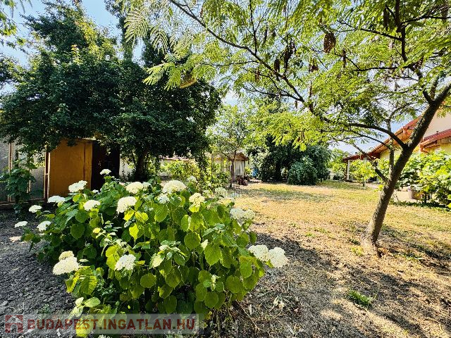A ház körül elterülő 1989 nm-es telek nemcsak a természet közelségét biztosítja, hanem számtalan lehetőséget kínál. Körte, alma, szilva, cseresznye, szőlő található a kertben. Amelyeket FÚRT KÚTRÓL lehet öntözni!
