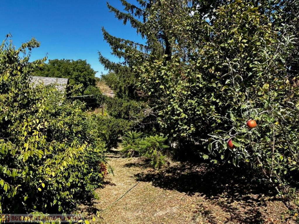 A lejtős telken 4 db diófa, 5 db almafa, 2 db körtefa, 4 db barackfa és 5 db szilvafa biztosítja a változatos gyümölcs kínálatot, valamint gyalog telepítésű szőlők vannak még a kertben.