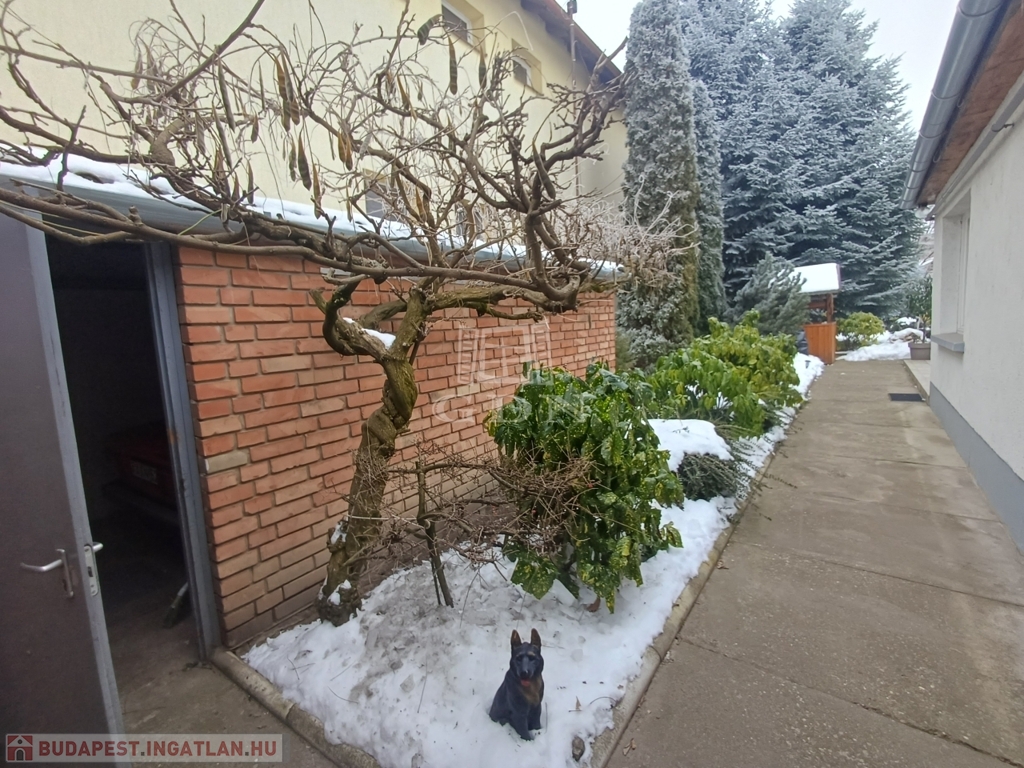 A házhoz pince is tartozik, valamint az udvarban fúrt kút segíti a kert gondozását. Az utcáról nyíló, elektromos kapuval ellátott 14 nm-es garázs kényelmes parkolást biztosít.