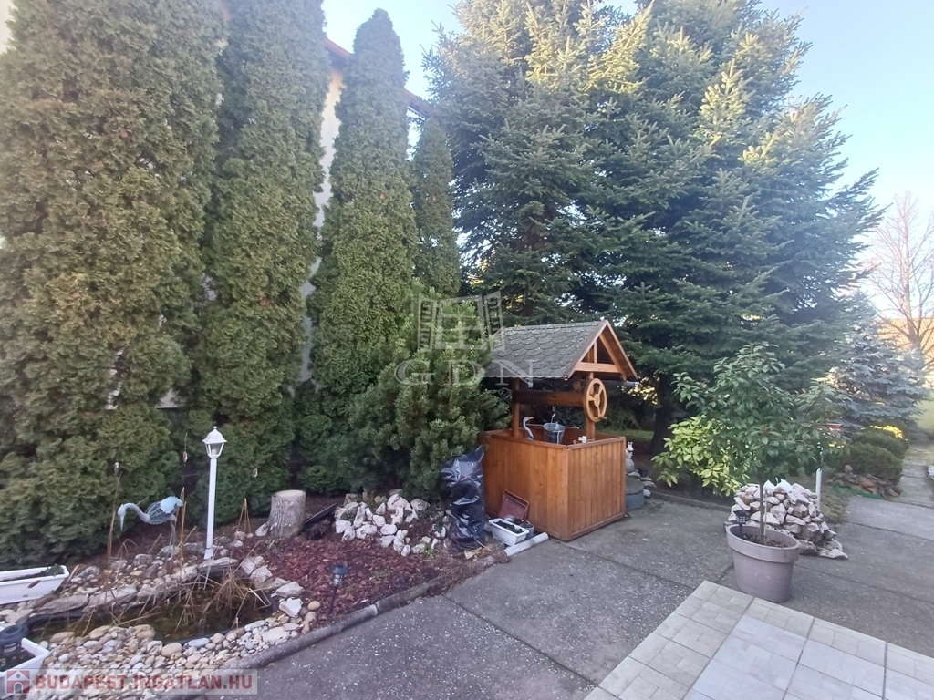 A házhoz pince is tartozik, valamint az udvarban fúrt kút segíti a kert gondozását. Az utcáról nyíló, elektromos kapuval ellátott 14 nm-es garázs kényelmes parkolást biztosít.