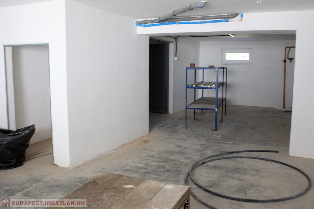 A telek hátsó részében egy stabil, emeletes melléképület, ami korábban műhely volt. A földszinten egy 60 nm-es és egy 20 nm-es terem található. Az emelet 60 nm-es, itt a vizes blokk és irodák vannak. A melléképület előtt fedett beálló, ahová tgk is befér.
