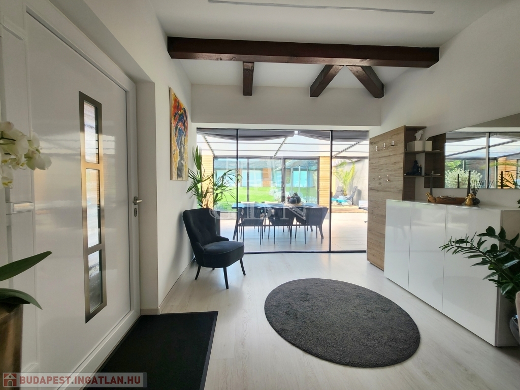 Az épület egyedi megoldásai mellett a teljes, újszerű állapotú bútorzatra is felhívnám a figyelmet, mely az "alap darabokon" túl, a jakuzzit, grillt, kerti bútort, dekorelemeket, szőnyegeket is magába foglalja - így megtartva az összhangot, melyet a színek, az anyagok és azok harmóniája alkot.
