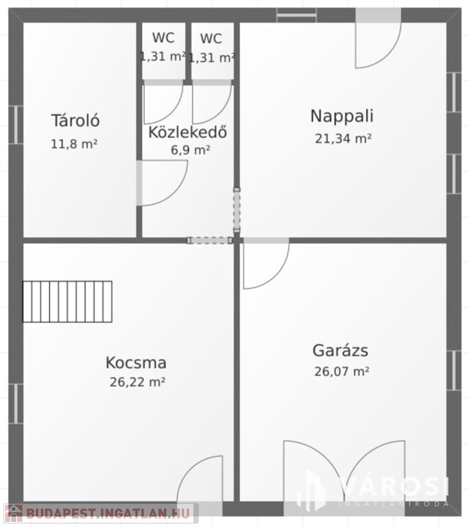 A pincébe belépve egy tágas helyiségben találjuk magunkat, amely korábban kocsmaként üzemelt, ezt a helyiség közepén található kocsmapult hűen tükrözi. Továbbá ezen a szinten található még két WC, egy tároló, a garázs és egy tágas nappali. A házhoz tartozik egy gyönyörű kertrész is, amely alkalmas grillezésre, kertészkedésre és ideális családi vagy baráti összejövetelekhez a nyári hónapokban, a téli hónapokban pedig a nappali és a kocsmai rész pótolhatja ezt. A garázs szerelőaknával ellátott, valamint a méretéből adódóan akár két autó is elfér benne.