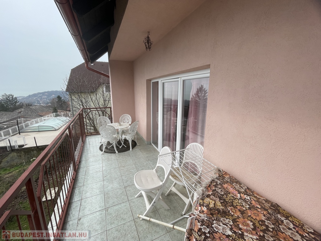 • Emeleti szint: örökpanorámás 20 m2-es nappali, melyből a 12 m2-es teraszra léphetünk ki, kilátással a Balatonra, 2 tágas hálószoba (21 m2 és 19 m2), fürdőszoba, és WC, valamint egy tetőtér feljáró, mely beépítésével további szobák alakíthatók ki