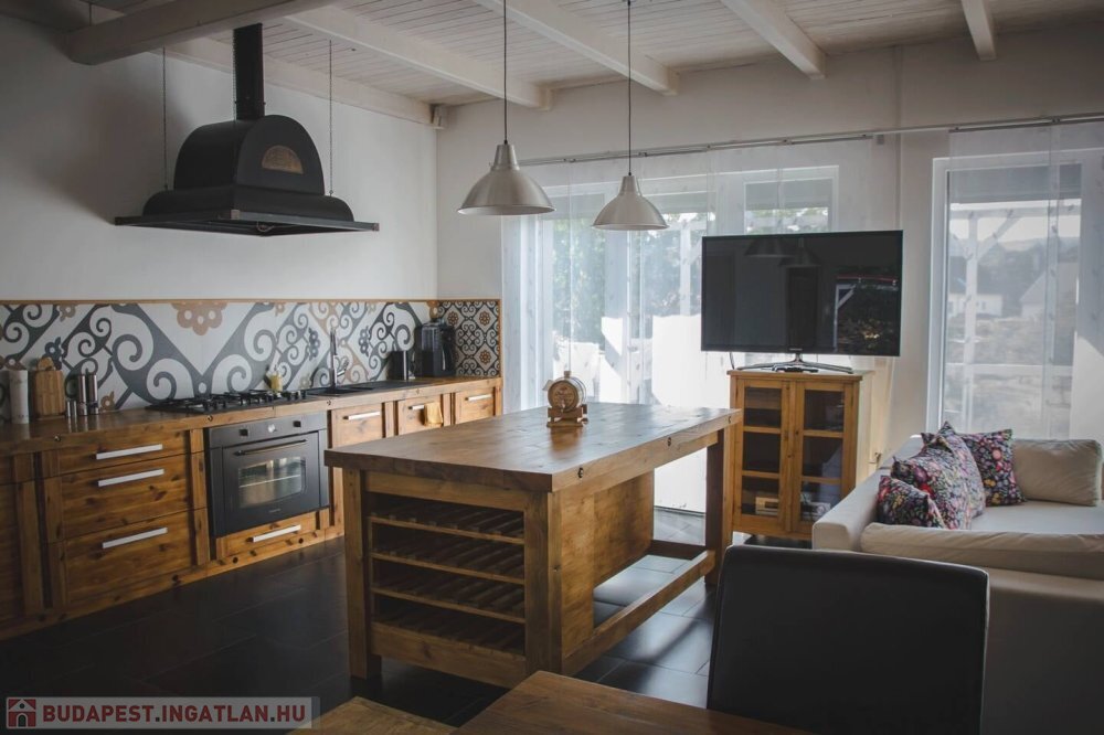 Az alsó szinten egy külön bejáratú lakrész található szobával, fürdőszobával és egy kis konyhával – tökéletes vendégeknek, vagy akár önálló apartmanként is hasznosítható.