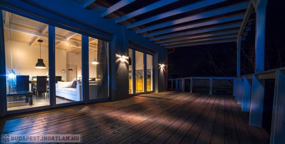 A nappaliból közvetlen kijárat nyílik egy nagyméretű teraszra, ahol igazán élvezhető a kert hangulata. Plusz szoba kialakítása is könnyen megoldható.