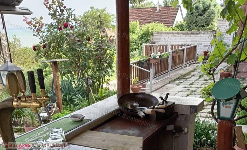 - emelet: közlekedő, kazánház, konyha-étkező, három szoba, egy kisszoba, fürdőszoba és toalett, erkély csodás balatoni panorámával