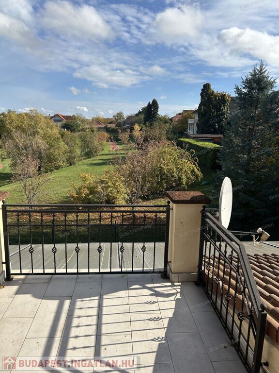 A kertben egy 10 méter hosszú, 3,6 méter széles kültéri medence kínál felfrissülést az egész családnak, a gyepszőnyeggel borított, mesés kert gondozását pedig egy automata öntözőrendszer teszi gondtalanná.