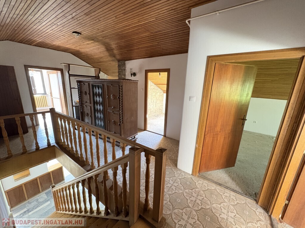 Balatonbogláron a Várdombon, 1977-ben épült, akár azonnal is birtokba vehető - a képeken látható felújítandó műszaki állapotú - 496 m2 összalapterületű, akár túrizmusra, vagy vendéglátásra is kiválóan alkalmas családi ház eladó. Az épület 4 szintes, a pince szinten tároló, mosdó és wc-k találhatók. Az alagsorban borozó, pince, előtér, tároló, kazánhelyiség, fürdő, konyha, 1 félszoba, valamint 2 terasz lettek kialakítva. A ház földszintjén előszoba-közlekedő, konyha, kamra, wc-kézmosó, nagyon szép és világos nappali, amelyből csodás panoráma nyílik a Balatonra, továbbá étkező, 2 szoba, közlekedő, fürdőszoba találhatóak. A tetőtérben 2 tágas hálószoba, 1 félszoba, közlekedő, fürdőszoba, konyha, valamint tároló vannak. A lakóház fűtése gázkazánnal, illetve a nappalban található cserépkályhával megoldott, a melegvizet villanybojler szolgáltatja. Az épület megközelítése behajtási engedéllyel lehetséges, a környezete kifejezetten rendezett, parkosított, a közvetlen közelben borozók, bobpálya és a gömbkilátó található. Telek: 1.073 m2.