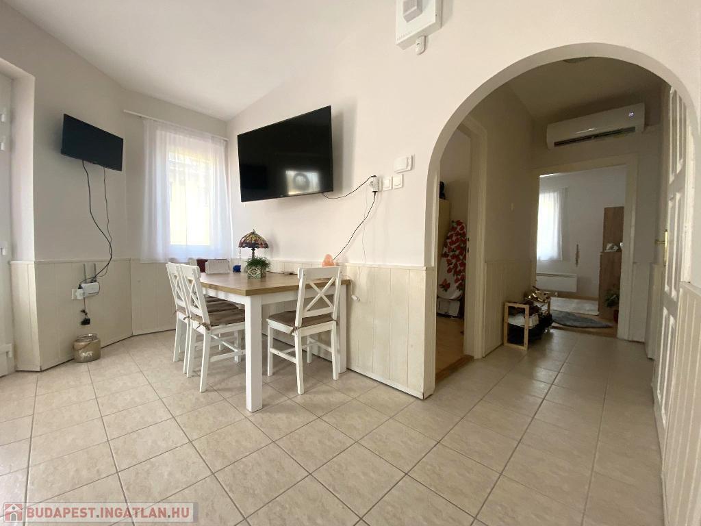 Az 1994-ben épült ház 2014 óta folyamatos felújításokon esett át, kiváló állapotú. A villanyvezetékek teljes cseréje 2 éve történt, a földszinti lakás tavaly új nyílászárókat kapott. Az elektromos fogyasztást H tarifás óra méri. 2 inverteres klíma biztosítja a ház hűtését. A fűtést NOBO panelek és klímák adják. A nyaraló riasztóval felszerelt. A korlátok, valamint az úszókapu gondozást nem igénylő anyagból készültek. Az ingatlan osztatlan közös tulajdon, az eladásra kínált házrészhez tartozó telekméret 308 m2. Parkolásra a ház előtt (nem fizető övezet), illetve a zárt kertben is van lehetőség.