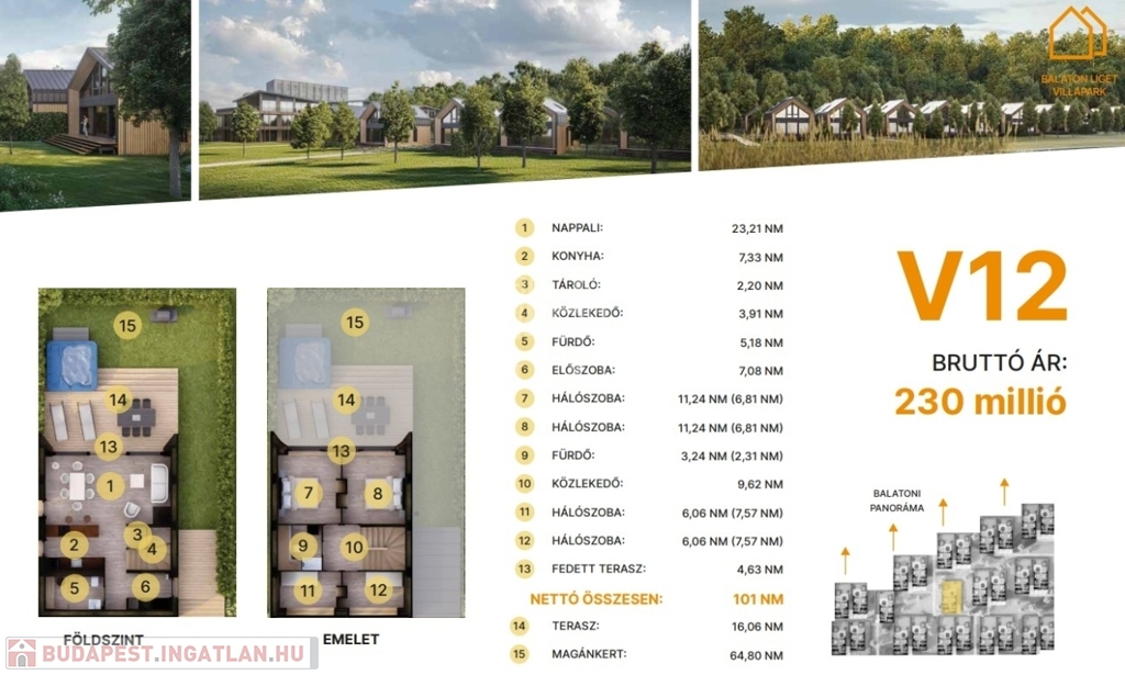 min. 62 m² magánkert.