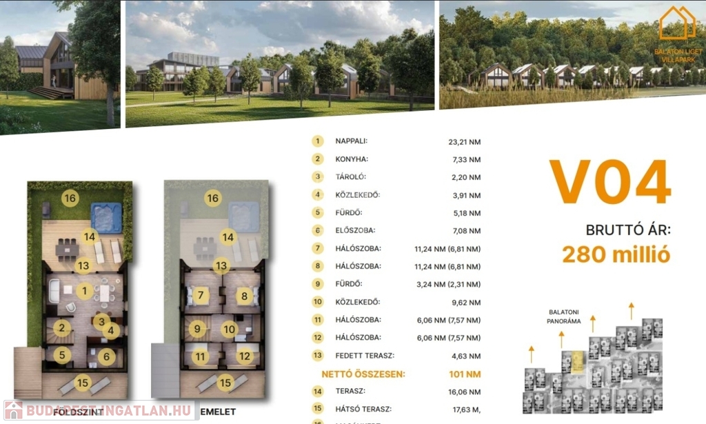 min. 64 m² magánkert.
