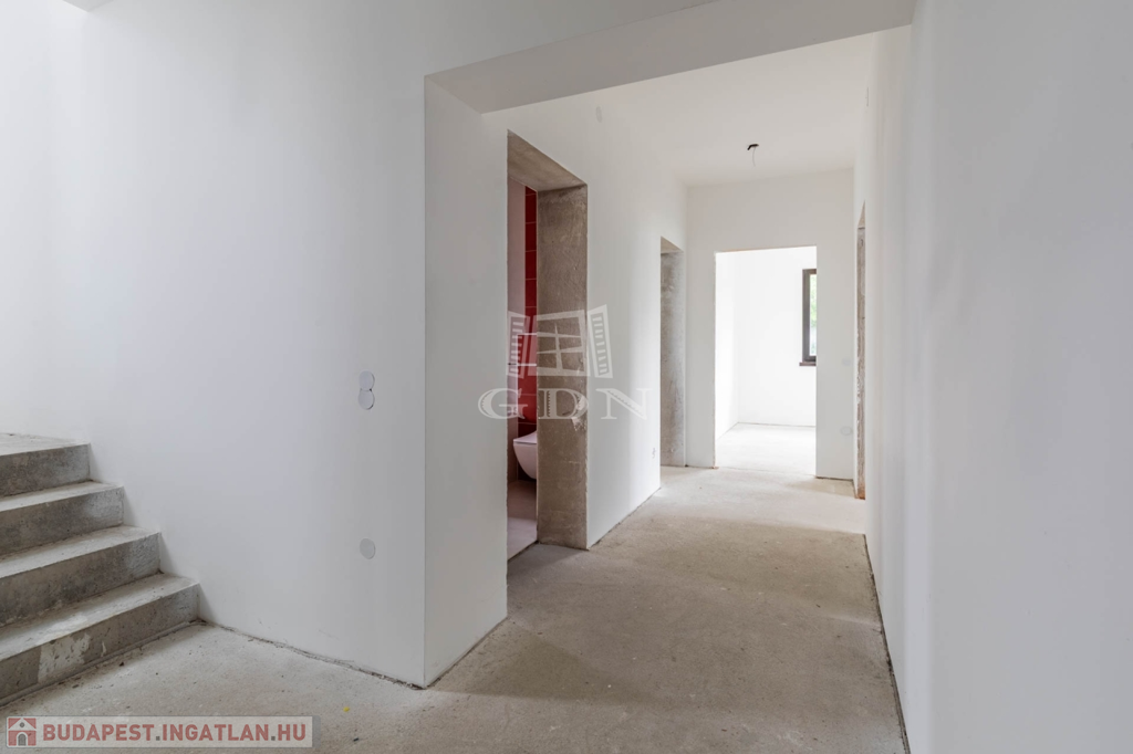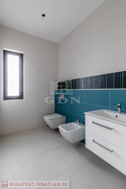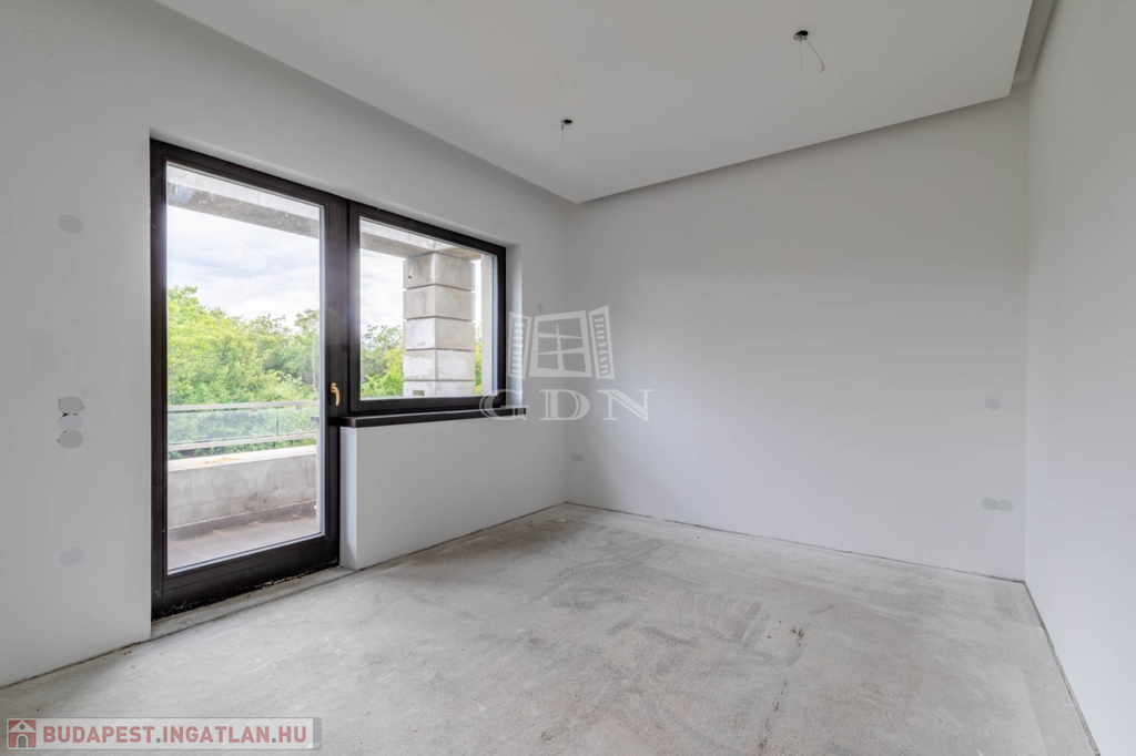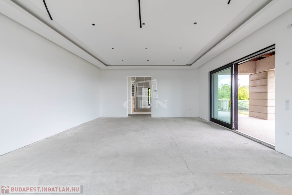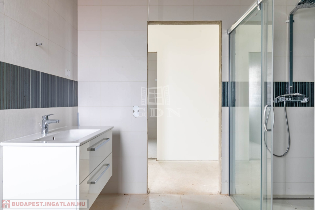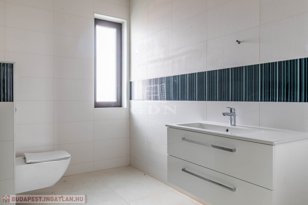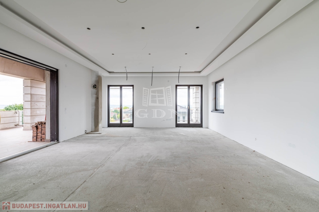 A 112 nm-es nettó alapterületű emeleten 1 nappali (kandalló előkészítéssel), 3 szoba, 2 fürdőszoba, valamint 101 nm-es részben fedett és pergolás körpanorámás terasszal.