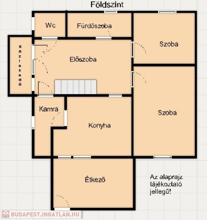 A földszinten található tágas előszobából nyílik a konyha-étkező, két szoba, a tusolós fürdőszoba és a wc. Az előszobát és a két szobát a hangulatos cserépkályha köti össze.