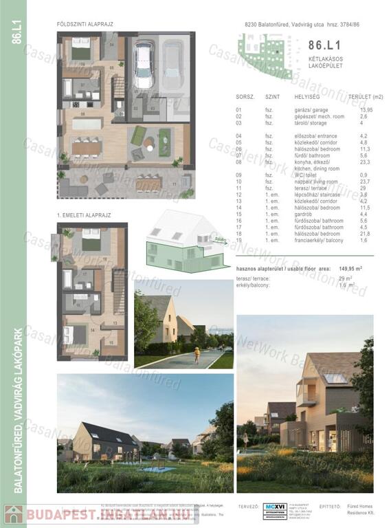 CasaNetWork Balatonalmádi által kínált balatonfüredi családi házak /ikerház villák/ jellemzői: