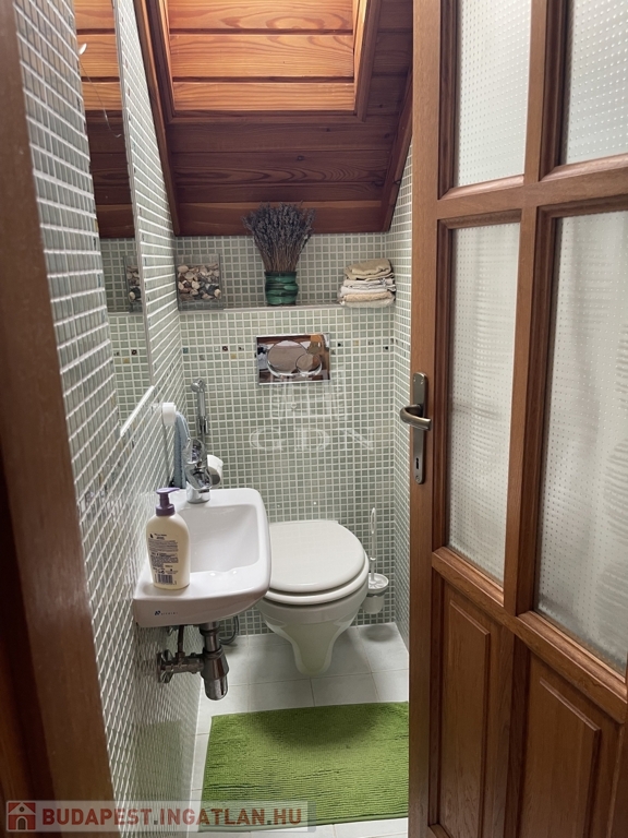 Emelet: 2 hálószoba (20 és 10,2 m²) split klímákkal, sarokkádas fürdő (4,1 m²), külön WC (1,6 m²), tároló