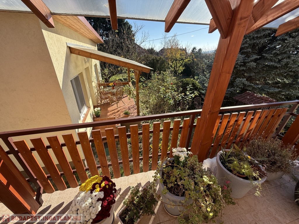 Az emeleten két hálószoba, az egyik erkélyes, mely külön kis reggeli menedék, ahol egy kávé mellett élvezhetjük a természetet, továbbá e szinten egy praktikus beépített szekrénnyel ellátott közlekedő és egy zuhanyzós fürdő kapott helyet.