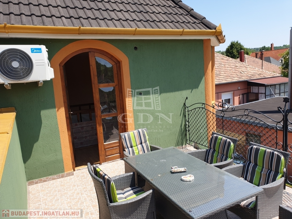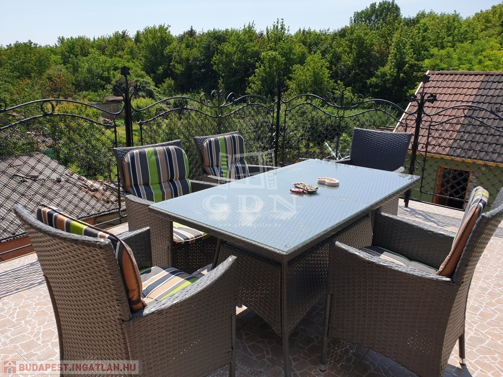 A főépület földszintjén található egy óriási nappali, egy háló, konyha ebédlővel és egy fürdőszoba, valamint külön helyiségben wc. Az emeleten található három hálószoba, fürdőszoba és illemhelyiség. Innen juthatunk ki az erkélyre is, ahonnan csodálatos kilátás tárul elénk. Az udvaron továbbá filagória és nyári konyha is használható. Parkolás akár az udvarban, de saját parkolóhelyek az ingatlan előtt.