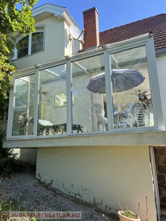 Balatongyörök kedvelt, csendes, erdő alatti részén örök panorámás ház eladó. Az ingatlan földszinti részén tágas nappali, amerikai konyha étkezővel, télikert, kis fürdőszoba ,míg a tetőtérben kettő szoba, gardrób, fürdőszoba található. A fűtés gáz kazánnal, illetve kályhával megoldott. A ház alatt hangulatos borospince van. A kert rendezett, árnyas fák alatt pihenhetünk. A telken egy különálló kis ház is található, amely alatt szintén borospince van.